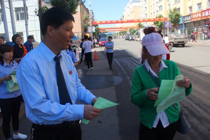 为了进一步深入宣传“6.5世界环境保护日”, 6月5日上午,民事审判二庭的工作人员会同滴道区环保局共同举行了《环境保护法》宣传活动,走上街头,释法答疑,向群众发送环境保护相关法律法规宣传单共五十余份。促进本辖区的机关事业单位、民营企业以及居民进一步普及、宣传环境保护的密切性、紧迫性以及重要性,并对涉及环境保护案件如何诉讼,怎样准备诉讼材料,怎样开展公益诉讼,积极地做好了宣传和相关法律咨询。