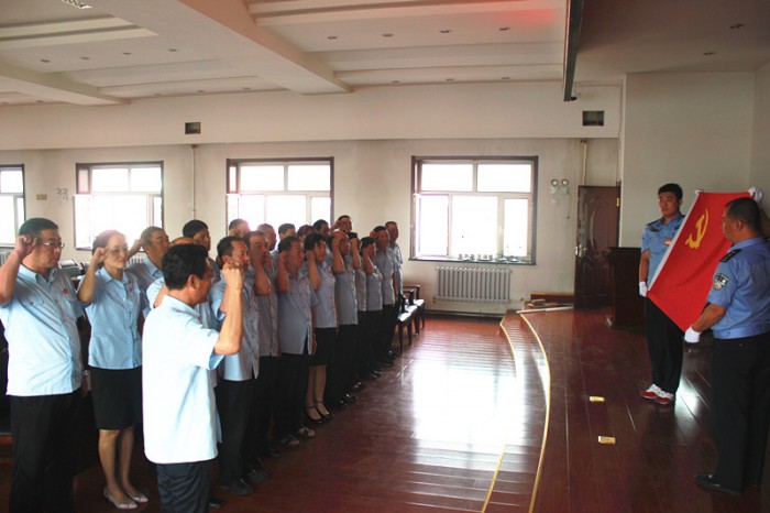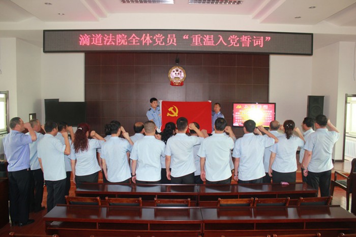 在党的生日来临之际,6月30日上午8点40分,滴道法院全体党员在党组成员、常务副院长张君起的领誓下,面对鲜艳的中国共产党党旗,举起右手,重温入党誓词,以此庆祝建党96周年的到来。