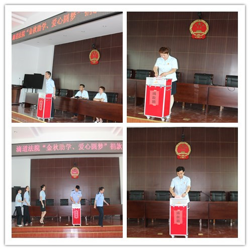 为了落实省第十二次党代会提出的“坚决打赢脱贫攻坚战”,要解决一部分人,不因贫失学、辍学的问题。发扬法院干警“敬业、协作、创优、奉献”的精神内涵,7月17日上午,滴道法院开展“金秋助学·爱心圆梦”捐款活动,携手共圆贫困学子读书梦。