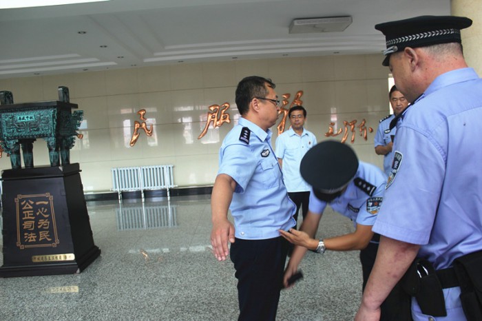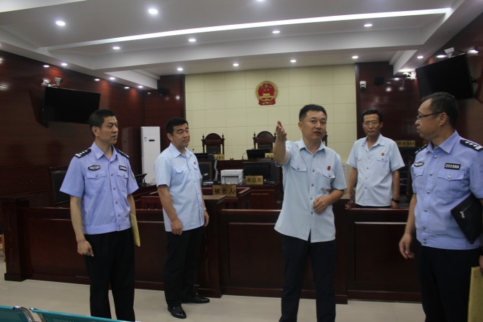 2017年8月21日上午,黑龙江省高级人民法院法警总队副总队长杨野一行四人在市中级人民法院副院长李德亮等人的陪同下,莅临滴道法院对安全隐患风险防控大排查专项行动进行检查,并对法警大队业务技能、执勤规范、制度落实以及重点部位进行了检查。
