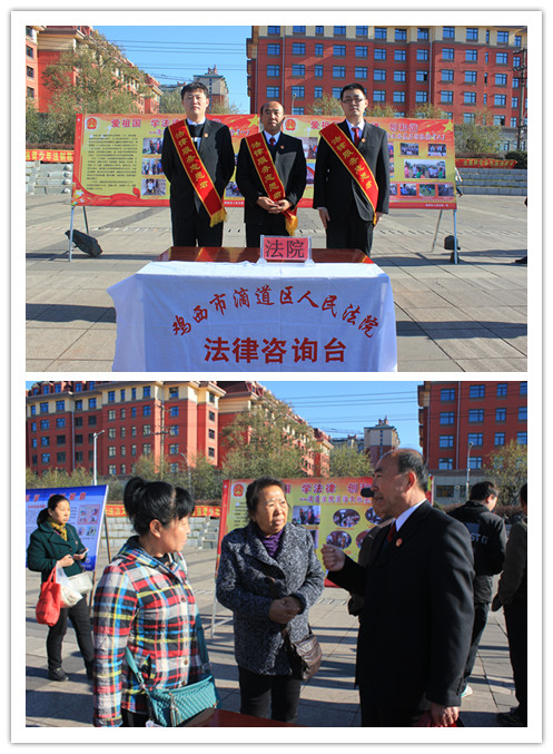 10月23日上午,滴道法院组织十余名干警参加滴道区“爱祖国、学法律、促和谐”法治文化基层行活动,为辖区居民送上法律大餐。