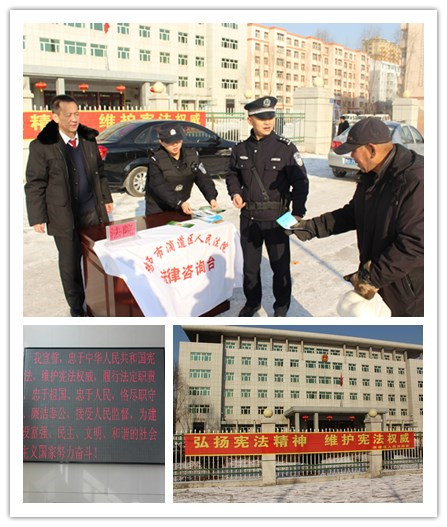 除了举行宪法宣誓仪式和开放日活动外,滴道法院还组织了一系列与弘扬宪法精神相关的活动,包括设立法律咨询服务台为辖区居民提供法律咨询,向居民发放法律宣传单及普法知识手册,在街道悬挂宪法日主题为“弘扬宪法精神,维护宪法权威”的横幅、在电子屏幕滚动播放宪法宣誓词等。